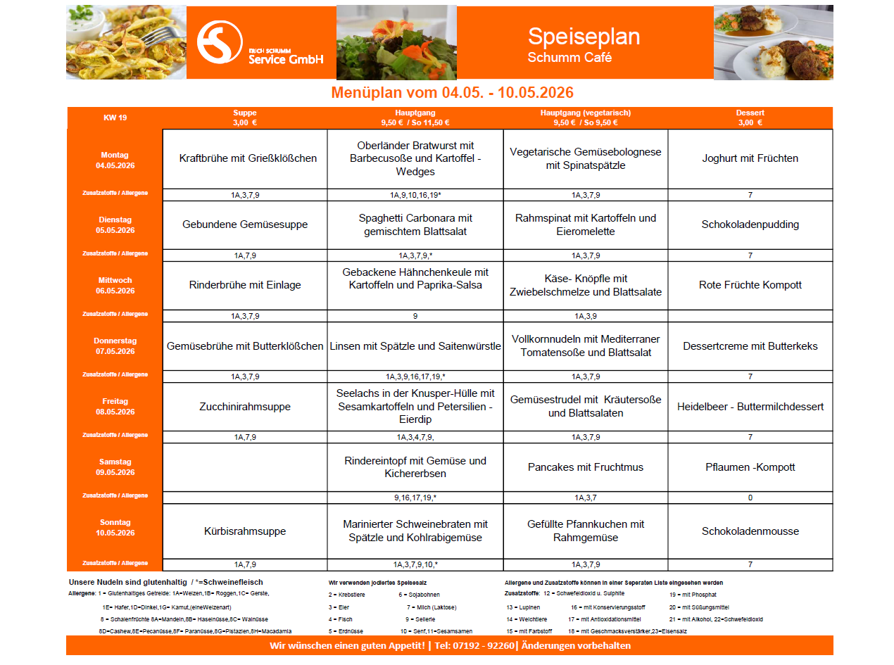 Speiseplan vom 04.05. – 10.05.2026